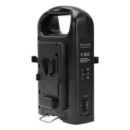 This Fotodiox Dual Position Li-Ion Charger supports two V-mount batteries (or a single battery) and offers a 4-pin XLR power output, providing dual-purpose functionality in a portable, handy design. It's capable of simultaneous charging, and the XLR port offers useful versatility for powering accessories. An ergonomic carry handle, flip-out kickstand, rubber foot pads, dual position On/Off switch, and LED status indicators complete the design and allow for comfortable and efficient operation.
