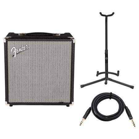 The all-new Rumble Series is a mighty leap forward in the evolution of portable bass amps. With its beefier power amp and larger, ported speaker enclosure, the Rumble 25 pumps greater volume and deeper bass response. In addition to standard volume and EQ controls, the Rumble 25 adds a newly-developed overdrive circuit and switchable Contour control, delivering gritty bite and slap-worthy punch at the mere push of a button.