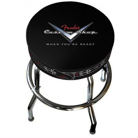 The barstool features a stylish pinstripe design with the iconic Fender Custom Shop logo.
