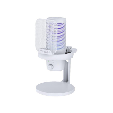 The Feelworld VM1 USB-C Cardioid Condenser Gaming Microphone with Desktop Stand is expertly crafted for gaming enthusiasts seeking superior audio performance. This microphone is equipped with advanced one-key noise-cancellation technology, effectively eliminating unwanted background sounds to ensure clear and efficient communication with fellow gamers. Its multiple RGB lighting effects create an engaging atmosphere, enhancing your immersion in gameplay.