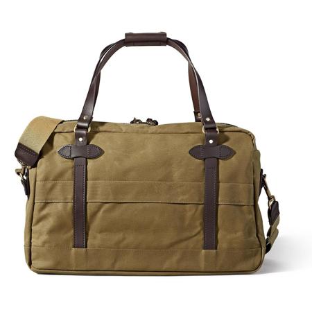 Filson's 48-Hour Duffle Bag is ideal for overnight and weekend trips. Oil finish Tin Cloth repels rain and snow to keep contents protected. An adjustable, removable shoulder strap allows shoulder or cross-body messenger carry. Outfitted with Bridle Leather straps for hand carry, and a trolley strap for use with rolling check-in luggage. Use it on the jobsite, in the field or as a carry-on bag - this versatile duffle is up to the task.