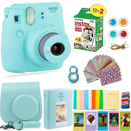 Fujifilm Instax Mini 9 Camera, Ice Blue - Bundle With Fujifilm instax mini Instant Daylight Film Twin Pack, 20 Exposures, FujiFilm Instax Mini 9 Accessory Kit