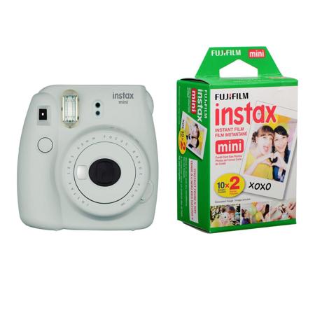 Fujifilm Instax Mini 9 Camera, Smoky White - with Fujifilm instax mini Instant Daylight Film Twin Pack, 20 Exposures