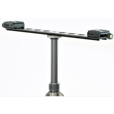 This FMR-16 Arca-Type-Compatible Accessory Rail is a 16"-long Arca-type dual-mount rail. It features a female 3/8"-16 center mount and two twist-mount Arca-type quick release receivers with 50mm plates.