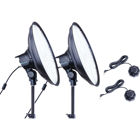 I have several other types of LED lights for video production purposes. These are absolutely brilliant with their round shape producing a great catchlight, and with a diffusion sock, or able to take an umbrella mounted straight through the middle - perfect! Because of the relatively large diameter of the light, IMO it works better shooting through a white umbrella rather than reflecting off the umbrella - the light simply obscures too large a central area for my tastes. Another great point is that the dimming feature is flicker-free, unlike one of my other brands. Getting these units from Adorama (rather than the competitors) is the way to go because of the padded "hat box" which seems to be an Adorama exclusive and is essential for storing or transporting them. Absolutely can't go wrong with these!