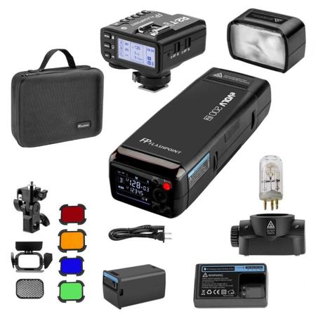 The eVOLV 200 TTL Pocket Flash and Flashpoint R2 Mark II ETTL 2.4 GHz Wireless Flash Trigger are compatible with a wide range of cameras, including R2 Canon, Nikon, Sony, and Fuji.