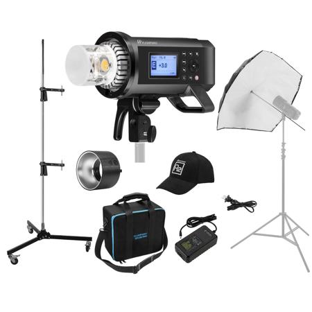 The battery recharge is a snap, too, using the external power charger to reach full capacity in less than 2 hours. Keep the action going without tying up the flash to re-energize. Exchange a depleted bat-pack in a matter of seconds to keep pace with whatever you're tracking. Realize the output of the pro 38w LED modeling light, with proportional, variable or recycle responsive settings and a cool bulb that produces a tungsten equivalent of 400w, and the sweet picture is complete.