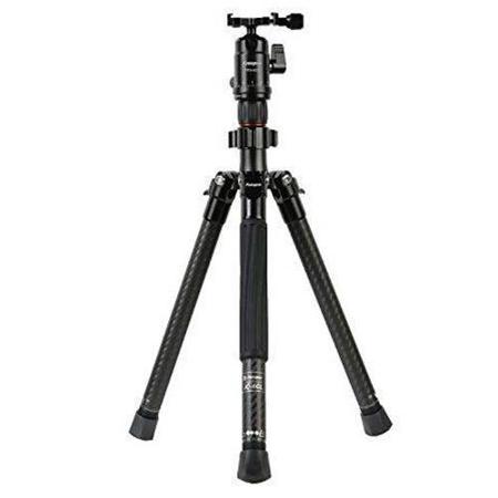 The Aircross mini carbon fiber tripod kit comes complete with the FPH-42Q dual action ball head. Legs with new painting , fashion , young and attractive, It is lightweight, weighing in at only 1.38 lbs and 7" when folded. This makes it perfect for traveling and adventure photography. It is robust and sturdy and can hold up to 17 lbs of gear. The aluminum ball head features a bubble level for accuracy and ergonomic locking knobs for easy operation while also sporting a panoramic scale. It comes complete with a 1/4-20 QR plate. This is a 4 section tripod which is extremely durable.