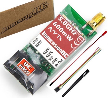 The Fat Shark 600mW version of the 5.8GHz transmitter greatly increases the range of a 5.8GHz link, adding a margin of security over the 25mW version. Team up with a Duo5800 or Uno5800 receiver on the ground and enjoy noise-free video further than you can see your model.
