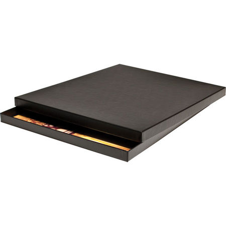 Wrapped in slightly embossed glossy black paper in 1" depth
