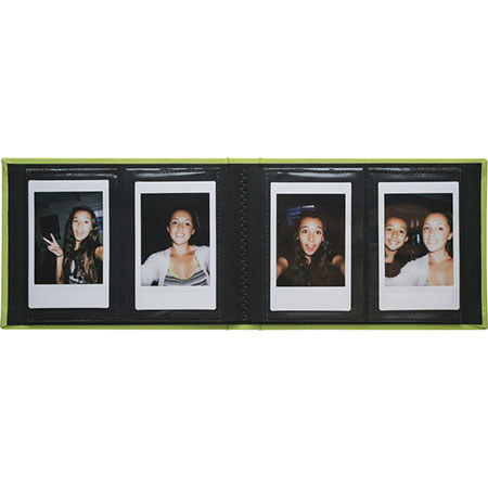 The Skutr Selfie Photo Album for Instax Photos - Large (Lime Green) holds up to 40 Fujifilm Instax photos and will hold one in the photo window on the albums front linen cover. Each page has two clear, archival polypropylene window sleeves which hold 2.25 x 3.5" Instax or Polaroid 300 photos. Small enough to fit in your purse or pocket!