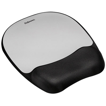 The Fellowes Memory Foam Mouse Pad/Wrist Rest (silver streak) responds to your body's weight and warmth, yet never loses its shape. This soft memory foam conforms to your wrist for exceptional comfort. Durable jersey covering withstands daily wear and tear. This mouse pad is optical-friendly for superior tracking control. The nonskid backing of the mouse pad holds it firmly in place.