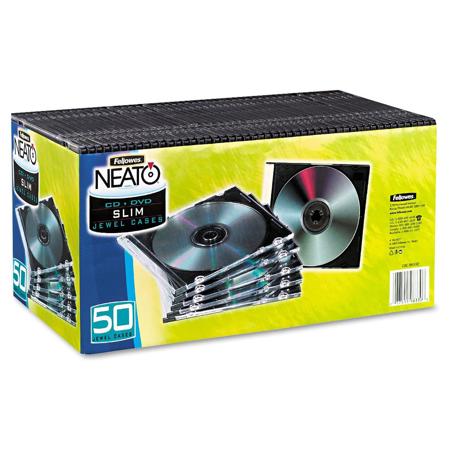 Fellowes NEATO Thin CD Jewel Case (50 Pack) hold 1 CD/DVD each. Slim case takes up half the space of a standard jewel case.