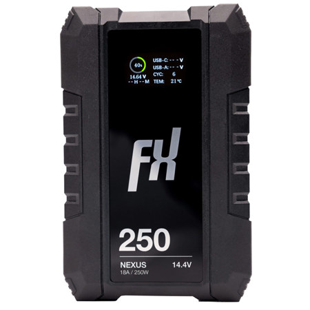 The Nexus BP-250SL is a V-Mount battery with a capacity of 14.4V / 17.4Ah / 251Wh and a maximum output of 14.4V / 18A. It features two D-Tap in/out ports, one USB-C port supporting up to 100W input/output, and one USB-A output port. Equipped with an intelligent PCB, the battery communicates with SONY and RED cameras, ensuring seamless integration and reliable performance.