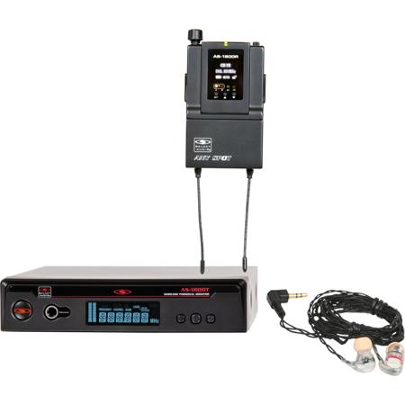 The transmitter allows the user to select from 640 frequencies or 32 channels and a has XLR/1/4" combination inputs, 2-1/4" Line Outputs and selectable 30 or 100 mW transmitter output. The transmitter (AS-1800T) can be programmed with the name of the user, so it is easily identifiable to see which transmitter is for each performer. The AS-1800T also allows the user to change between name, frequency or channel on the display. There is a sensitivity selector for the transmitter input to match low and line level inputs.