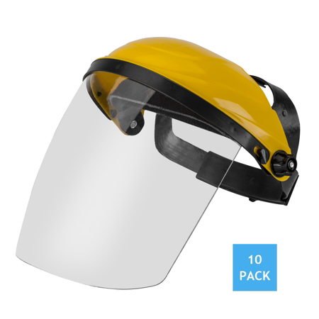 The Ratchet Headgear Head and Face Shield Protection with Clear Visor offers superior protection to head and face from splashes and debris in working environments subject to particles, sparks, fragments, and other potentially damaging airborne elements. The safety system features an adjustable ratcheted headgear strap and a hinged WP96 polycarbonate face shield with unrestricted visibility. The adjustable thirteen position ratchet suspension and five position crown strap offer customized settingsfor individual user's head size.