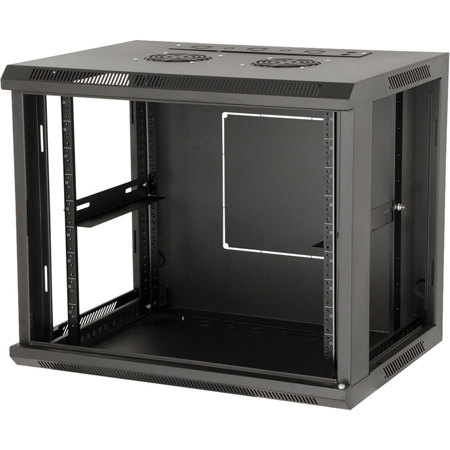 The Gator Cases GR-WF4B0917TB Fixed Wall Mounted Rack with Steel Door (9U, 17" Deep) features a fixed back single section welded frame construction. The 18 gauge removable mounting panel allows for easy installation. The unit also features 18 gauge removable side panels (with spring latch) and cold rolled steel top and bottom. The front and rear rack rails are 11 gauge drilled and tapped.