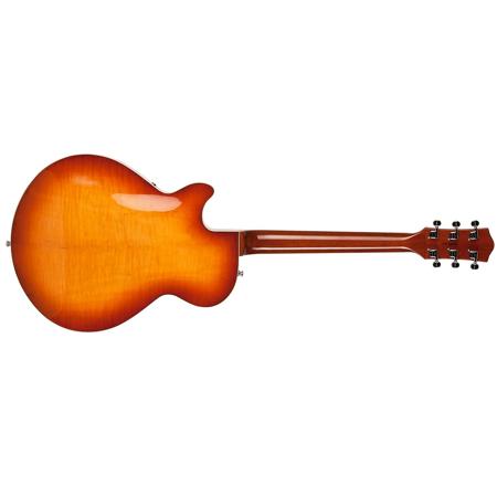 The Montreal Premiere Supreme features beautifully figured flame maple top, back & sides along with a bound headstock and fingerboard with large celluloid dot inlays. Powered by custom Seymour Duncan humbucker pickups and kept precisely in tune via the high-ratio Godin machine heads.