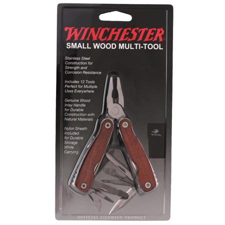 The Gerber Winchester Small Wood Handle Tool features handsome wood inlays on the handles for a classic appearance. This Winchester Multi-Tool provides a classic design that will look as good as it performs. Packed with ten handy implements, the Winchester multi-tool from Gerber slices oranges, drives screws, cuts wires, clamps down on work pieces and opens refreshments on the fly.