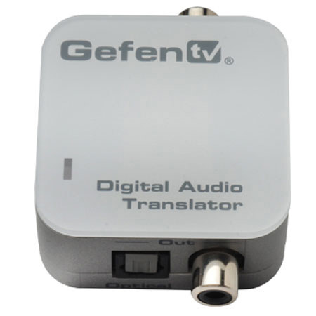 The Gefen GefenTV Digital Audio Translator is a compact and convenient coaxial/TOSLINK audio converter that accepts an audio signal input through either coaxial (S/PDIF) or optical (TOSLINK) cable. Both outputs pass digital audio simultaneously. The GefenTV Digital Audio Translator can also act as an audio repeater unit, effectively doubling the digital audio distance. The input can be switched from S/PDIF to TOSLINK using the slide switch on the input side.