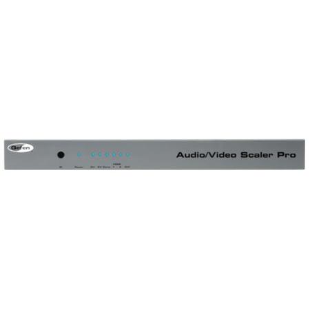 Scale analog and digital video up to 1080p / 1920x1200 and output as digital HDMI with digital audio. Easily adjust key video aspects such as color, aspect ratio and noise reduction with the Gefen Audio/Video Scaler Pro. Digitize and scale audio and video in different formats into outgoing HDMI together with external digital audio (S/PDIF and TOSLINK). Fitting neatly in an equipment rack, the Gefen Audio/Video Scaler Pro is conveniently located close to the center of AV operations. Rack ears are included. The Gefen Scaler Pro can interface with a variety of sources from set-top boxes and DVD players, to all popular video gaming consoles, with full 1080p support and compliancy with HDCP. Wide-screen scaling of VGA and DVI desktops is also achieved by the Gefen Scaler Pro.