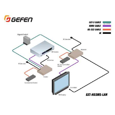 The HD over IP with RS-232 and 2-way IR extends HDMI, RS-232 and bi-directional IR over a Gigabit Local Area Network. Resolutions up to 1080p Full HD and 1920 x 1200 (WUXGA), HDCP, Deep Color, 7.1 channel High Bit Rate digital audio and Lip-Sync pass-through are supported. The Sender and Receiver units can be automatically or manually configured to unique IP addresses to allow the connection of multiple Senders and Receivers to the same network. Multiple Receiver units can simultaneously connect to any Sender unit within the network including the Gefen KVM over LAN products with HDMI, DVI or VGA video, to create a virtual crosspoint matrix of just over 65000 Sender and Receiver units total, depending on the network bandwidth and number of ports on the network switch.