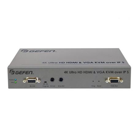 Gefen's Video over IP solutions continue our tradition of providing high performance, scalable, expandable and secure AV routing and distribution over a standard Gigabit Local Area Network. The Gefen 4K Ultra HD and VGA KVM over IP extends HDMI, VGA, USB, 2-way audio, RS-232 and IR. The Sender features a 1U tall and half-rack-width enclosure, perfect for rack mounting using the Gefen EXT-RACK-1U-GRY rack tray (available separately). It can also be surface mounted or be placed on a shelf. The Receiver is also rack mountable using the rack tray, can be surface-mounted or can be placed on a shelf. When used with the included IR Extender module, this low-profile unit can be hidden away behind a display or in the equipment closet.