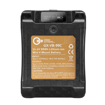 Stay informed with the battery's 16bit ADC/power meter algorithm, MCU, and OLED digital display, allowing you to monitor the battery's status accurately. The Green Extreme 99Wh Lithium-ion Mini V-Mount Battery is built with premium high-performance cells that are rechargeable and stable, meeting MSDS, UN38.3, IEC62133, UL2054, UL62368, and other internationally recognized standards. This battery ensures you can capture every moment without worry, making it an essential addition to your photography gear.