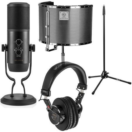 The bundle includes the UMP-5 Professional USB Multi-Pattern Condenser Microphone, H&A Versa Pro Field and Studio Monitor Headphones, and a Tripod Microphone Stand.