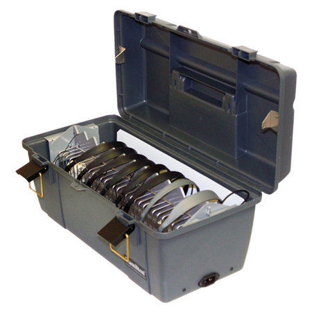Keep everyone clean and healthy with the Hamilton Buhl Portable Mini Automatic Sanitizer, Hygenx-MIN! This unique patent pending sanitizer - developed and built exclusively by Hamilton Buhl - automatically and safely sanitizes headphones and other small electronic devices with UVC light irradiation. The portable mini unit eliminates over 99% of harmful pathogens by passing direct UVC light over the items being sanitized, then reflecting the UVC light off built-in reflectors, completely flooding all the surfaces with the UVC light for one to two minutes.