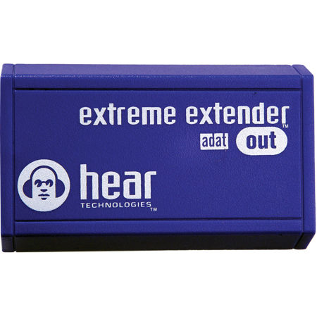 The Extreme Extenders were designed to solve ADAT Optical distance limitations. In addition to extending ADAT optical interface up to 500 feet, the Extreme Extender ADAT In may be connected to the Optical output of any ADAT device, such as a DAW, Mixer, etc. and connected to the input of a Hear Back Hub. The Extreme Extender ADAT Out can be connected to the HearBus out of a hub to obtain two ADAT outputs.
