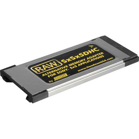 Hoodman RAW SXSXSDXC Alternative Memory Adapter for Sony SXS Applications. Designed for use with Hoodman RAW SDHC memory cards. Place Hoodman RAW SDHC memory card into the RAW SXSXSDXC adapter then place SXSXSDXC adapter in devices using SXS cards. Download data through express card port or eject SDHC card and place in SDHC to USB reader.