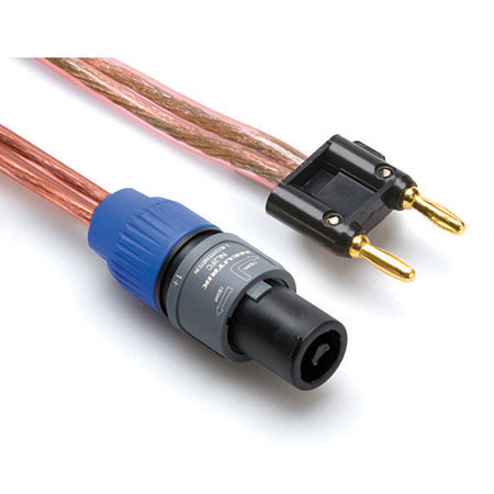 The Hosa 20' Neutrik speakON to Dual Banana Speaker Cable features a high quality Neutrik speakON connector, dual 16 AWG OFC (Oxygen-free Copper) conductors and a clear zip-style jacket offering transparency and easy termination. This cable is intended for high-current applications and delivers reliable, clear signal with minimal noise.