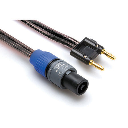 The Hosa 5' Neutrik speakON to Dual Banana Speaker Cable (Black Zip-Style Jacket) features a high quality Neutrik speakON connector, dual 16 AWG OFC (Oxygen-free Copper) conductors and a black zip-style jacket for low visibility and easy termination. This cable is intended for high-current applications and delivers reliable, clear signal with minimal noise.