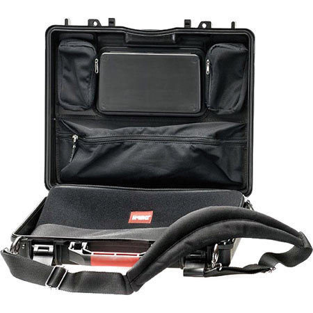 An interior ADV KIT (Removable Shoulder Strap with Pad, Three Zippered Pouches inside the Lid, and Laptop Bag up to 15'').