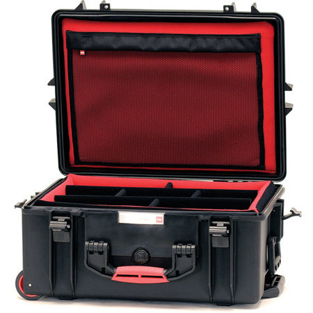 The HPRC (High-Performance Resin Cases) HPRC2600WDK Waterproof Hard Case (Black) is a lightweight, waterproof, unbreakable case. The case can be used to carry audio, photo or video equipment and accessories. It meets ATA 300 specifications for shipping cases. The hard-resin shells are virtually unbreakable and the interior rubber O-ring keeps the case air and watertight. The case has an air pressure release valve. It is transported by a super-soft rigid grip handle, a high-strength aluminum telescopic handle or smooth-gliding wheels.