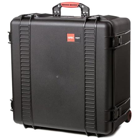 This wheeled hard case for Thypoon H is a watertight hard case that features wheels and a retractable handle designed to make travel easy. Based on the HPRC 4600W series, it is pretty compact. It features a pre-cut foam interior that specifically holds the Typhoon H, batteries and a battery charger, the transmitter, cables and other miscellaneous accessories.