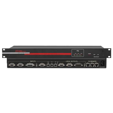 The Hall Research Technologies Model U97-Ultra-2B-S Sender is part of the U97-Ultra-2B kit and is used to extend Dual Display PC Video, Stereo Audio (amplified or line level), RS-232 and up to 3 independent USB ports to a remote location up to 500 feet away on any Category Cable (CAT5e/6 etc.). This product is a rack-mountable Sender Unit that connects to the Model U97-Ultra-2B-R wall-mountable Receiver. Both the Sender and Receiver can be purchased as a kit as a Model U97-Ultra-2B.