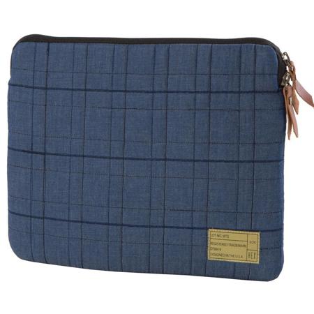 The Montrose sleeve for 11" MacBook Air lets you transport your laptop in signature HEX style. Crafted in a custom blue quilted poly denim that is treated for water resistance. The inside is padded and lined with faux-fur. Also included are genuine leather zipper pulls.