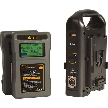 The iKan C-2KA-KIT-95 is a portable Anton Bauer battery charger kit, consisting of two batteries and an AC power supply. The unit features an XLR 4-pin DC power output and can charge two batteries simultaneously and features a built-in capacity management system, ensuring the fastest charge possible.