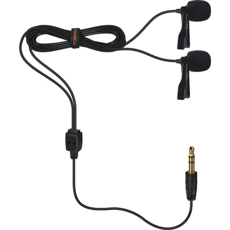Designed to pick up two discrete sound sources and output them to one mono destination, the Comica Dual-Head Lavalier Omnidirectional Condenser Microphone offers two omnidirectional capsules. This makes it easy to pin each mic to an interview subject and take a single output to a variety of destinations. As such, the Dual Head Lapel Microphone is suitable for ENG and field-recording applications.