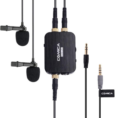 The CVM-D03 lavalier lapel microphone can be used on your DSLR cameras, camcorders, and smartphones. This versatile and flexible dual-head lavalier microphone is an excellent choice for outdoor or indoor video recording.