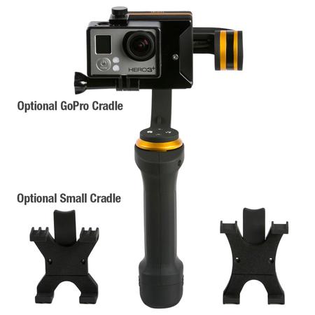For a better handheld solution for the GoPro Hero 3 & 4, use a GoPro mount (FX3P-GPM, optional accessory). The mount encloses the GoPro while allowing easy access to all buttons and quick-flip access to the battery. The GoPro mount is custom-fit for utilizing the GoPro on the FLY-X3-PLUS. To "fly" the GoPro, use the included hex key to remove the smartphone cradle and lock and refasten the GoPro frame. Capture longer takes with the Gesture Control System. Initiate Gesture Control by tilting and panning the handle and the camera will follow these movements smoothly.