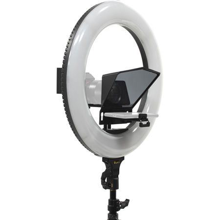 Ikan's HomeStream Smartphone Teleprompter is our first teleprompter for specifically designed smartphones in mind. Using the downloadable HomeStream Teleprompter app on either iOS or Android you can use your smartphone as a teleprompter display. The teleprompter offers a large 70/30 beamsplitter glass that clearly displays your text, while at the same time conveniently attaches to the lens of your camera. The ring light teleprompter combo allows for quick small studio set up.
