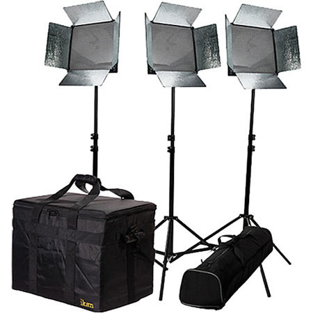 The iKan ID1000-v2 3-Point Light Kit includes 3 ID1000-v2 LED lights, 3 light stands, 3 remote controls, 1 soft padded carry case for 3 ID1000-v2 LED lights, 1 light stand carrying case for 3 light stands and all necessary power cords giving you a complete LED lighting solution. The ID1000-v2 does away with yesterday's knobs in favor of an LCD touch screen with smooth dimming control from 0-100% in 100 steps.