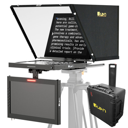 The Ikan PTZ Teleprompter system is a unique PTZ teleprompting system that enables the PTZ camera's pan, tilt and zoom capabilities while still behind the reflective teleprompter glass. You can easily pan the camera between multiple people reading from the same script.