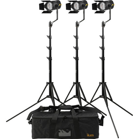 The Stryder Daylight 5600K 50 watt LED light is a part of iKan's Stryder line of COB LED lights. The SW50 is a 4" Fresnel light that can change from a wide beam angle to a tight beam with the click of a latch. The extremely quiet active cooling system keeps it working through any shoot. It's easy to move the Stryder around on set due to its lightweight heavy duty plastic body and easy setup. This versatile field light can be used in or out of a studio. The 18650 batteries that power the SW50 are a convenient power source because they can be found in most stores. This allows for use in any production environment. The large yellow control knob makes it easy to operate and control the brightness. With the 4 way barn doors included, the Stryder SW50 Daylight LED is all you need on set.