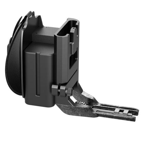 The side handle slides on the base of the Tilta half (TA-T01-HCC) and full camera cages (TA-T01-FCC). The Tilta TA-T01-SH-MHC2 side handle can hold a rechargeable battery type F970 (sold separately) and an SSD type Samsung T5 (sold separately). Handling, operating time and recording capacity are significantly increased with the side trading TA-T01-SH-MHC2.