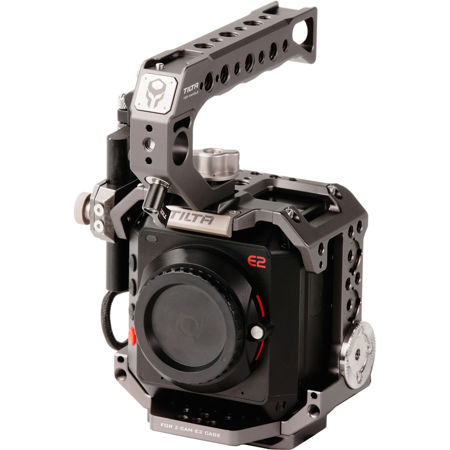 The quick release top handle and various optional side handles can be attached to the cage to provide for different ways to comfortably operate your camera setup. This kit of the Z CAM cage includes: the base Z CAM cage, quick release top handle, Samsung T5 SSD drive holder, 90 degree USB-C cable for Z CAM, Arca quick release baseplate and Manfrotto quick release baseplate.