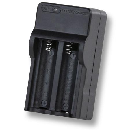 This dual battery charger allows you to simultaneously charge two of the 14500 rechargeable batteries that are used to power the Nucleus-Nano Hand Wheel Controller via an AC power supply. When plugged in and with the batteries inserted, the small LED turns red and when the batteries are fully charged, the LED turns green.
